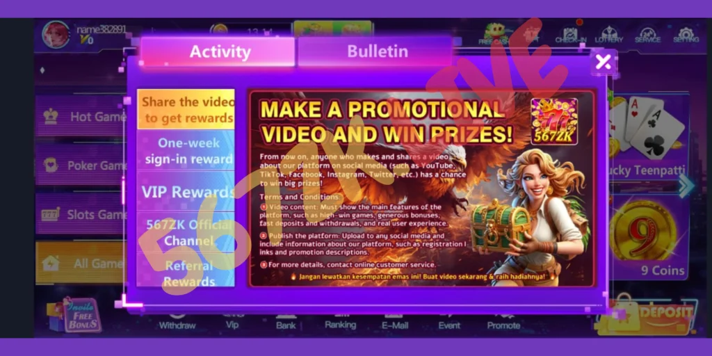 If you are a player who cannot put a bet down and cannot deposit money to a bet, you can make money from 567ZK GAME games for free. In this way, you can sign up for the referral program and get the referral commission. Another passive income option is the discussion commission in the same vein. So keep on using these incentives in order to be able to continue to enjoy your game. Also, check Bn55 Game, H555 Game, and Y888 Game.